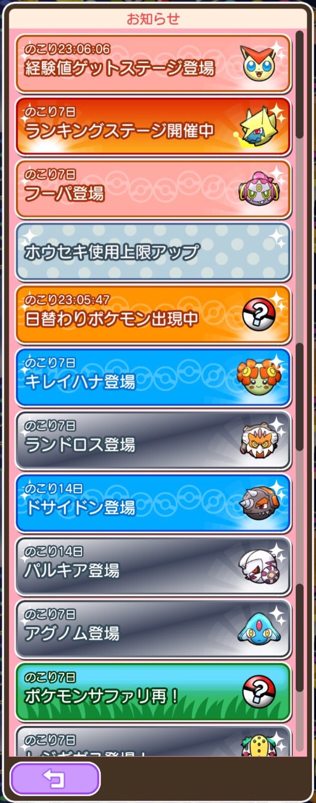 ブログ タイトル通りポケとるが終了となります 毎週火曜日に更新データがありますが半年分の データが判明しました。 嘘だと思うなら更新を せずともこのスケジュール通り開放されるので 真実を自分の目で確かめてみてください 1週目 (2/13) 新規キレイハナ No1 タイプ:くさ 特性 :ようりょくそ(晴れの時に素早さが2倍になる) 夢特性:いやしのこころ(ダブル・トリプルバトルで味方の状態異常が治ることがある) 体重:58kg(けたぐ2 dagar sedanポケとる:ステージux151~ux155(ゴンべ、ハリマロン、イワーク、ケロマツ、ドーブル) ポケとるのUXステージを攻略していきます。 以下、(x,y)でマス目を表します。